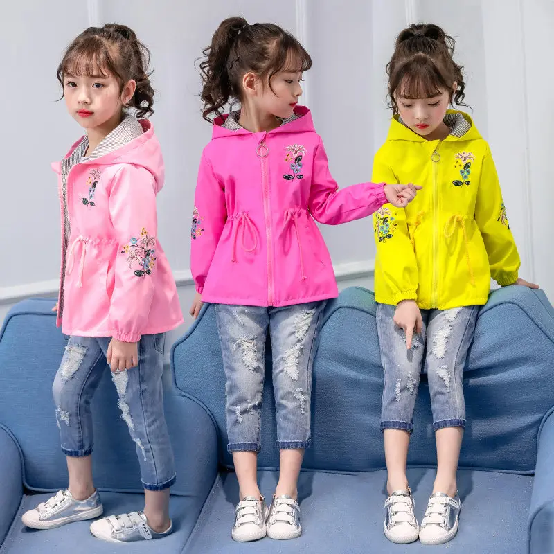 Limited Chance for 2019 New Girls Windbreaker Trench Coat Baby Kids Flower Embroidery Hooded Outwear Trench Baby Kids