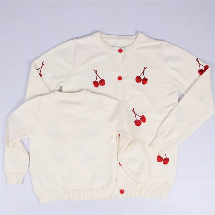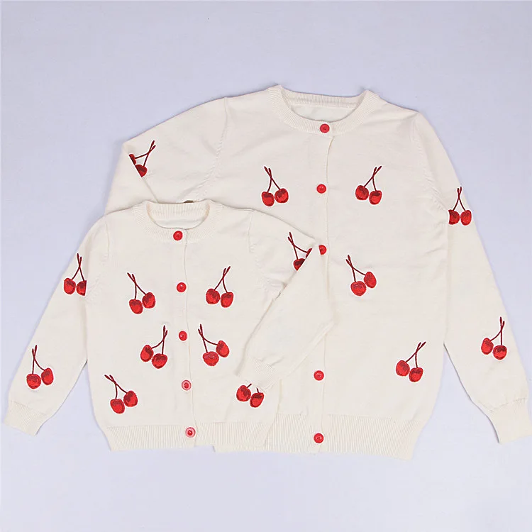 Limited Offer for Mother and Daughter Clothes Fashion Cherry Printed Knitting Coat for Girls Baby Long Sleeve Cardiga
